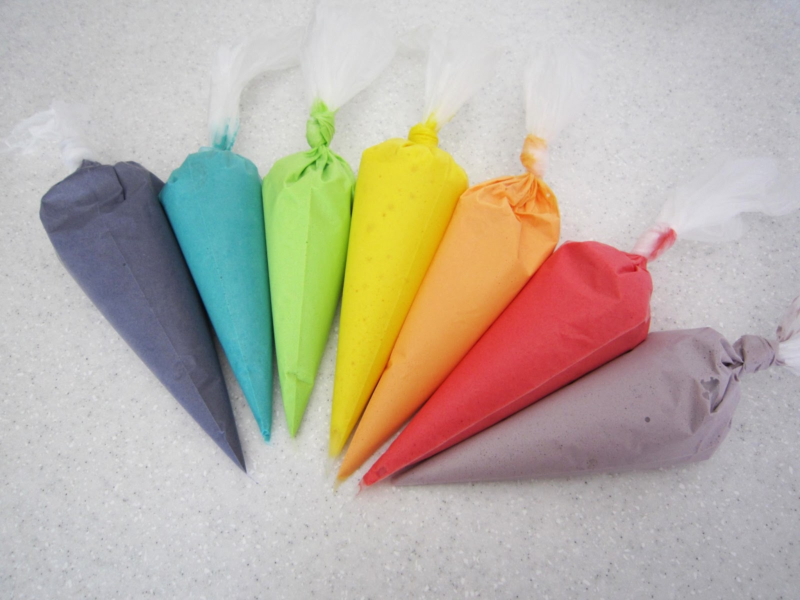 Do cukrářských sáčků nalijeme jednotlivé barvy – pokud sáčky nemáme, tak nevadí, čtěte dále i to se dá vyřešit 🙂