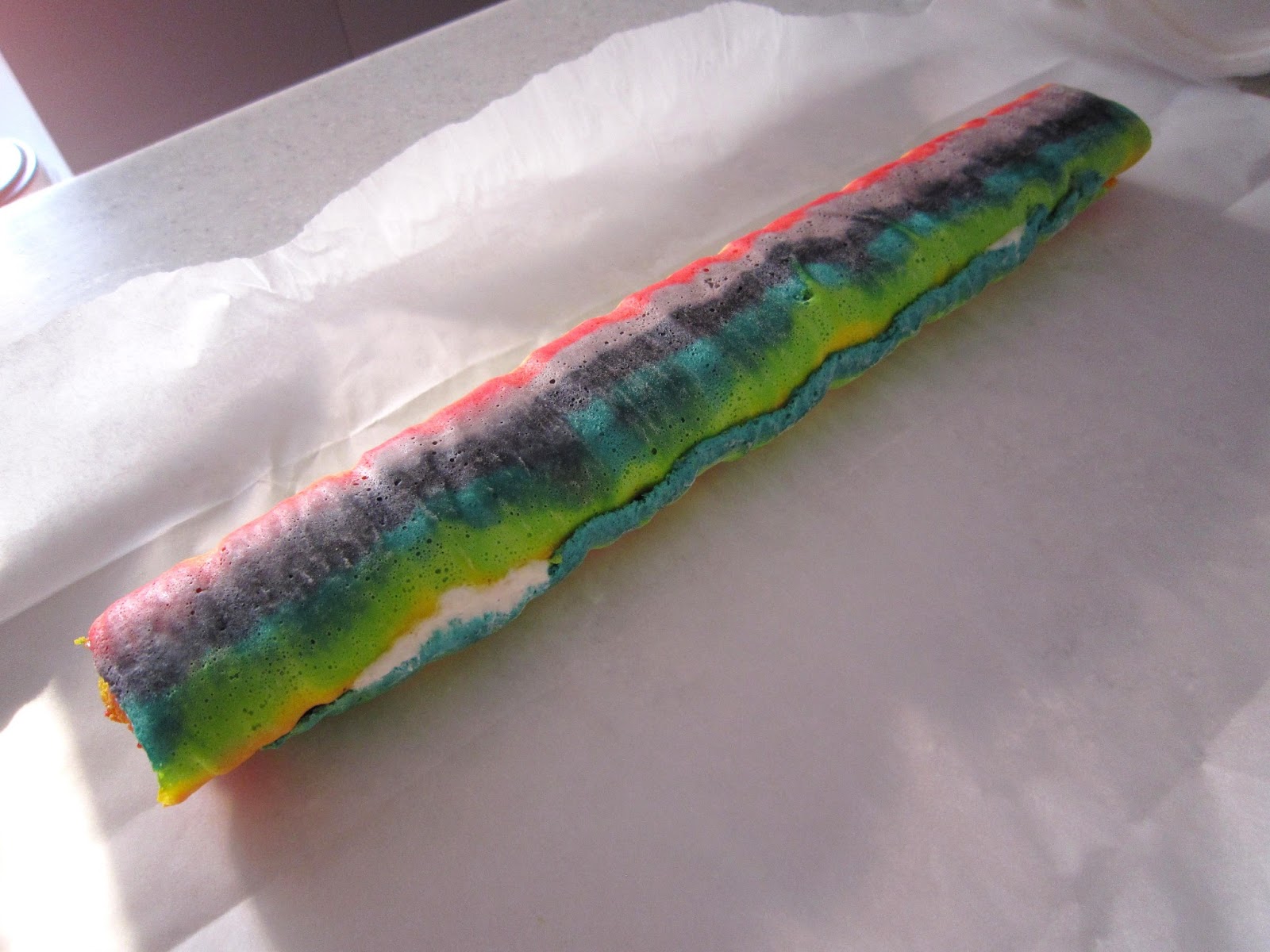 Upečené těsto můžeme potřít marmeládou a ní nanést vrstvu krému. Stočíme do rolády a necháme zatuhnout.